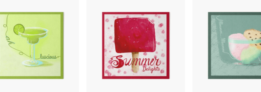 I added them to my Summer Flavors collection on RedBubble. Postcards, tote bags, pillows, journals, coasters, and aprons seem the most popular.