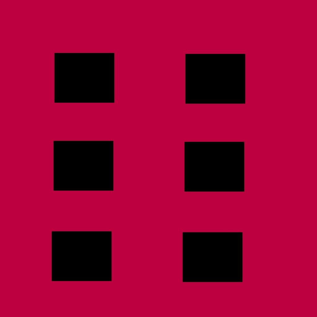 Here’s mine— you see a deep red background and six black squares, evenly spaced on the canvas— but do your own thing, of course. You may want to use circles.