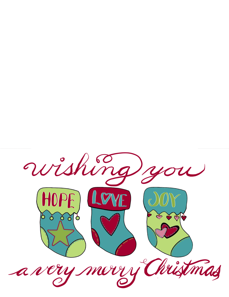 Notice that my hand written message isn’t perfect– and you shouldn’t let imperfections keep you from downloading and creating your own message card. What words would you add to the stocking tops? What message would you write?