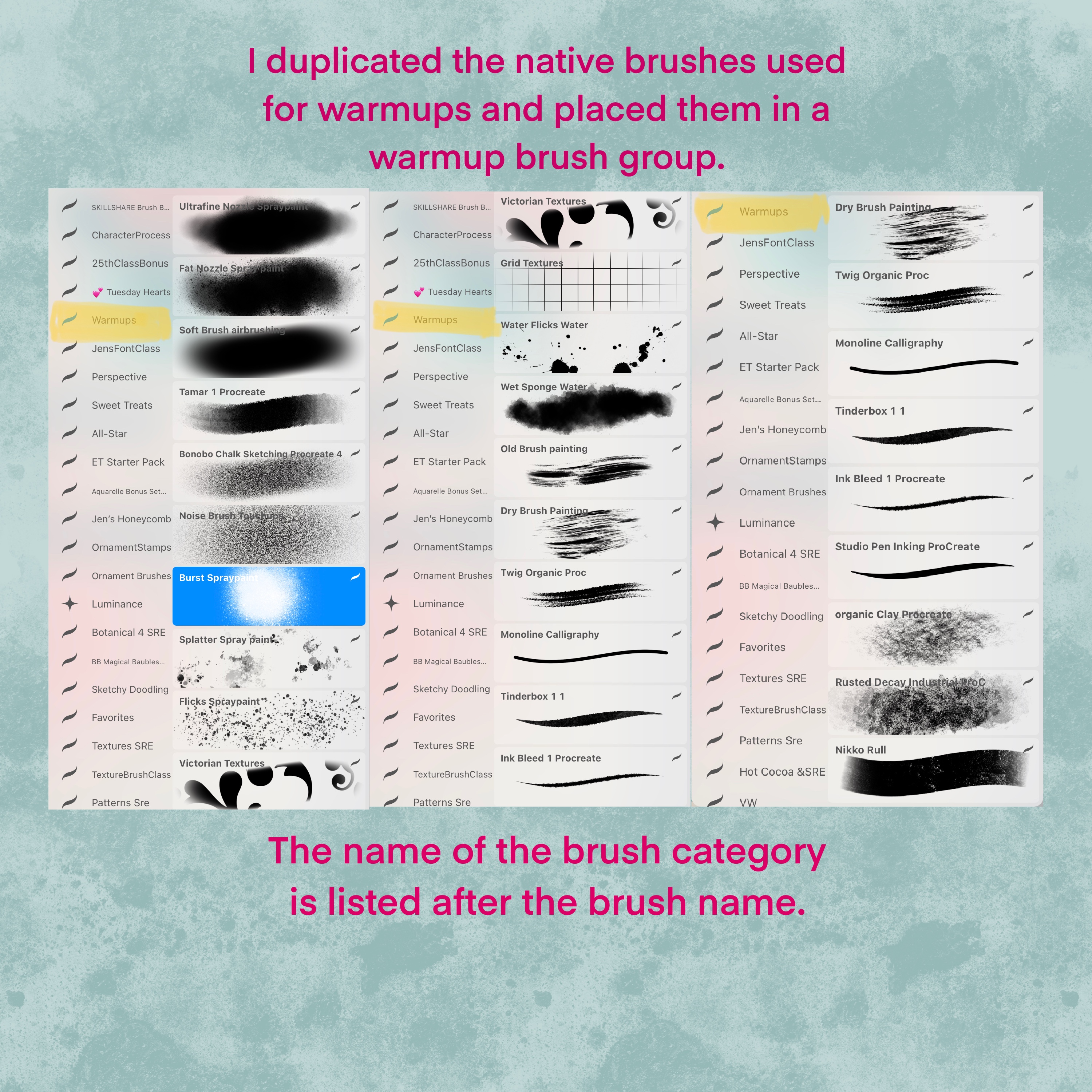 Decide on the brushes you’ll probably use. I chose these and Ink Bleed from Inking.