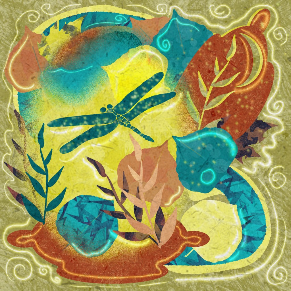 Today I thought I’d share a new style I’m trying– a bit of abstract art inspired by Brenda Bakker’s post on abstract art in Instagram. I could combine that with Jennifer Nichols new Selection Tool Animal Illustration to get the texture into the abstract through the selection tool, which gave me the idea for this week’s Wednesday Warmup. Today, one of my challenges to myself gave the opportunity for more abstract art and my other challenge, poetry.