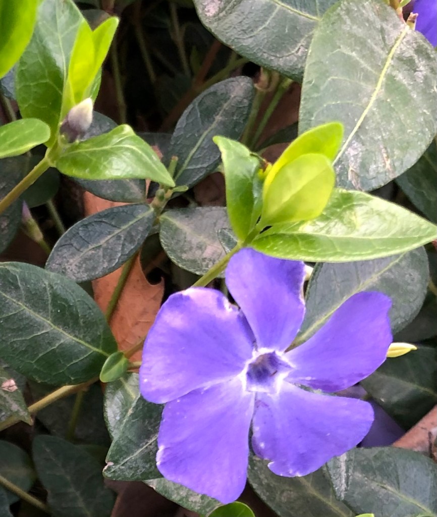 I modeled this flower inked illustration after the periwinkle that grow in my yard– it’s a ground cover that stays green all year and, in spring, blossoms in lovely pink or white booms which bring hope for the coming days.