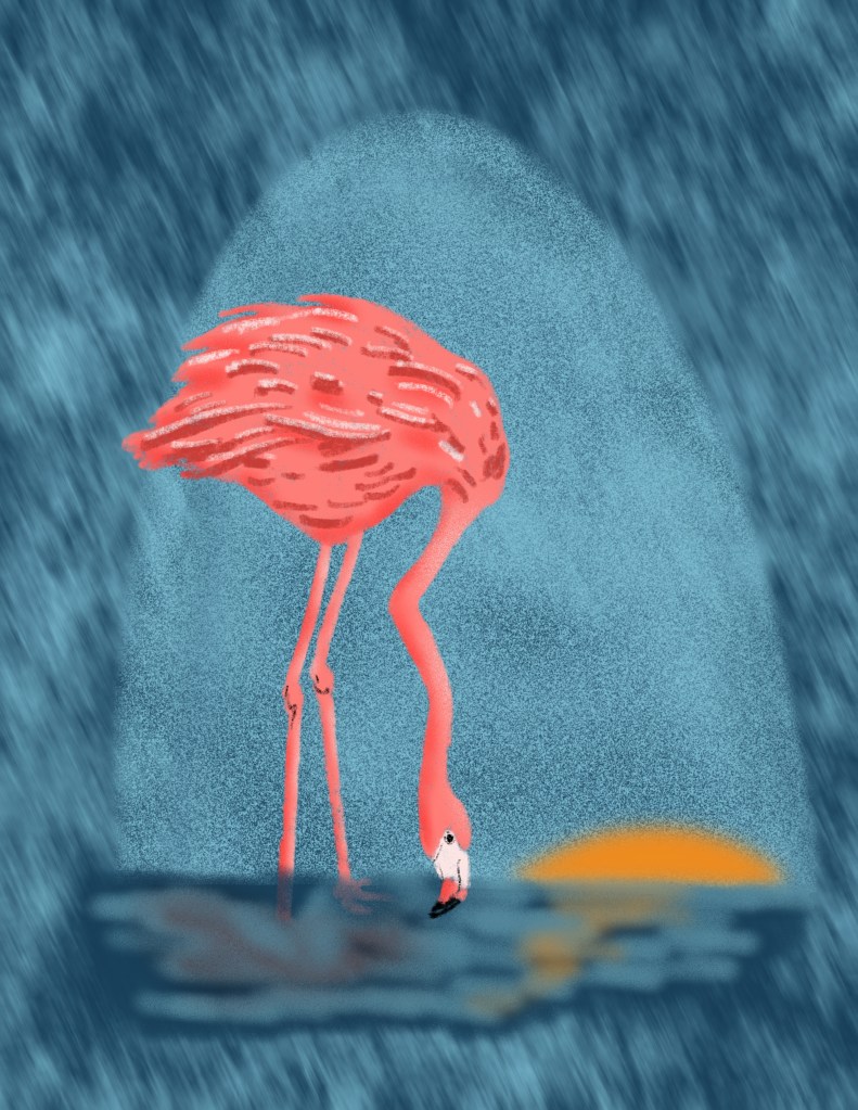 I started with creating a flamingo illustration to try out some new strategies for backgrounds using motion blur. As you can see, not all art is perfect, but it’s always enjoyable and a learning experience.