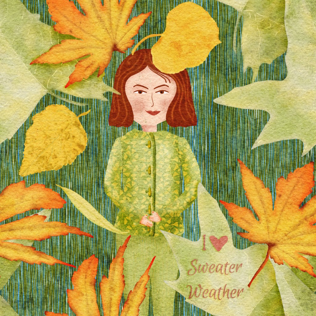 Often for such complicated, layered textures and shadows, I need more than one document to create each element. I name those files “assets” so I can change colors and shadings or something if needed. I then create a “flat” file to manipulate and fine tune the shadows — like the layered aspen and willow leaves. That way I can create other patterns or designs with the same elements.