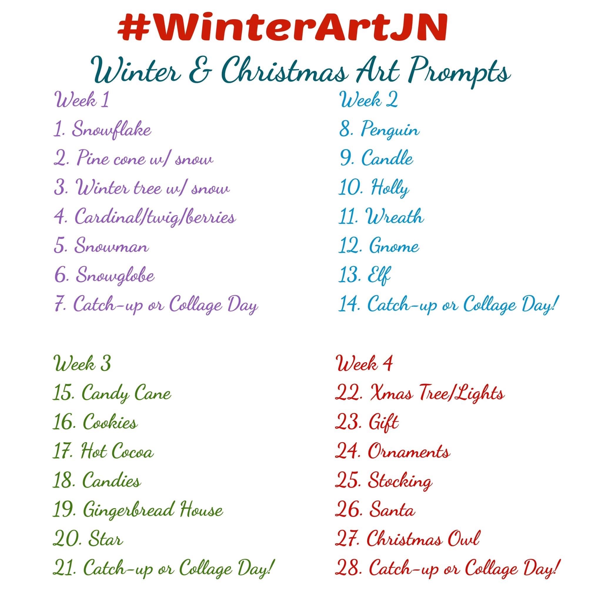 So, that wraps up this Wednesday Wrap Up. With a collection of art work from a month of prompts, one idea is to mail post cards to your friends and family with your artwork. Just create a template with one of your patterns, and insert the square images– or make oval displays, whatever fits your art and willingness to share!