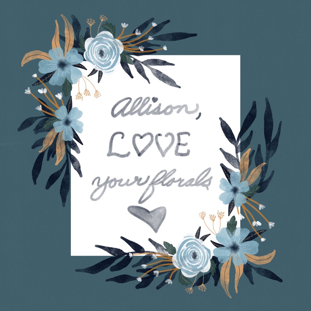 On the right is my message handwritten to Allison in my first attempt at Teela’s lesson, completed with her watercolors brushes [link to extended watercolor license— costs more, but then you can use them for sale items]