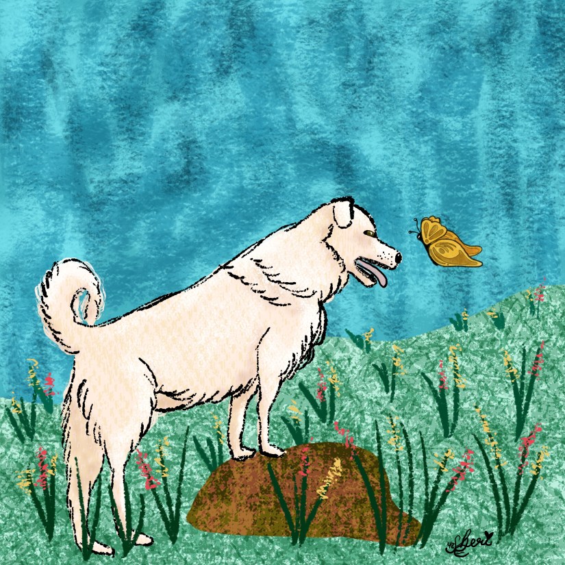 As my readers know, I illustrate daily art prompts with my CLmooc friends. In January and February I chose prompts from Lisa Bardot’s #makingarteveryday. Lisa provides tutorials on many different styles of art, which she shares in her long blog post 30 Art Styles to Try in Procreate. This month the theme is “Animals,” and this week is “Pets.” Today’s wrap up includes a reflection on my “dog” illustration using the painterly [gouache] style with textures.