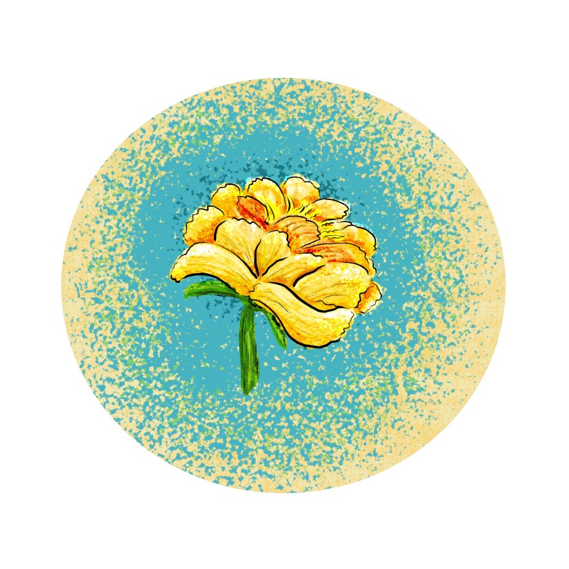 Due to the war in Ukraine, I wanted my peony to be yellow with a blue background. Yellow is difficult to work with— it’s difficult to choose the colors for the petals in the back because just adding in black to darken results in a muddy color. I followed the advice of many artists, including Lisa Bardot, for choosing a color by moving the hue towards orange in the color wheel.