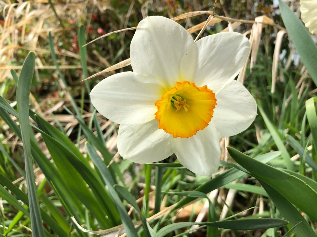 I chose comic/pop art and cubism styles to illustrate daffodils, with the help of Lisa’s Art Styles website. Above is my inspiration: a daffodil from my garden.