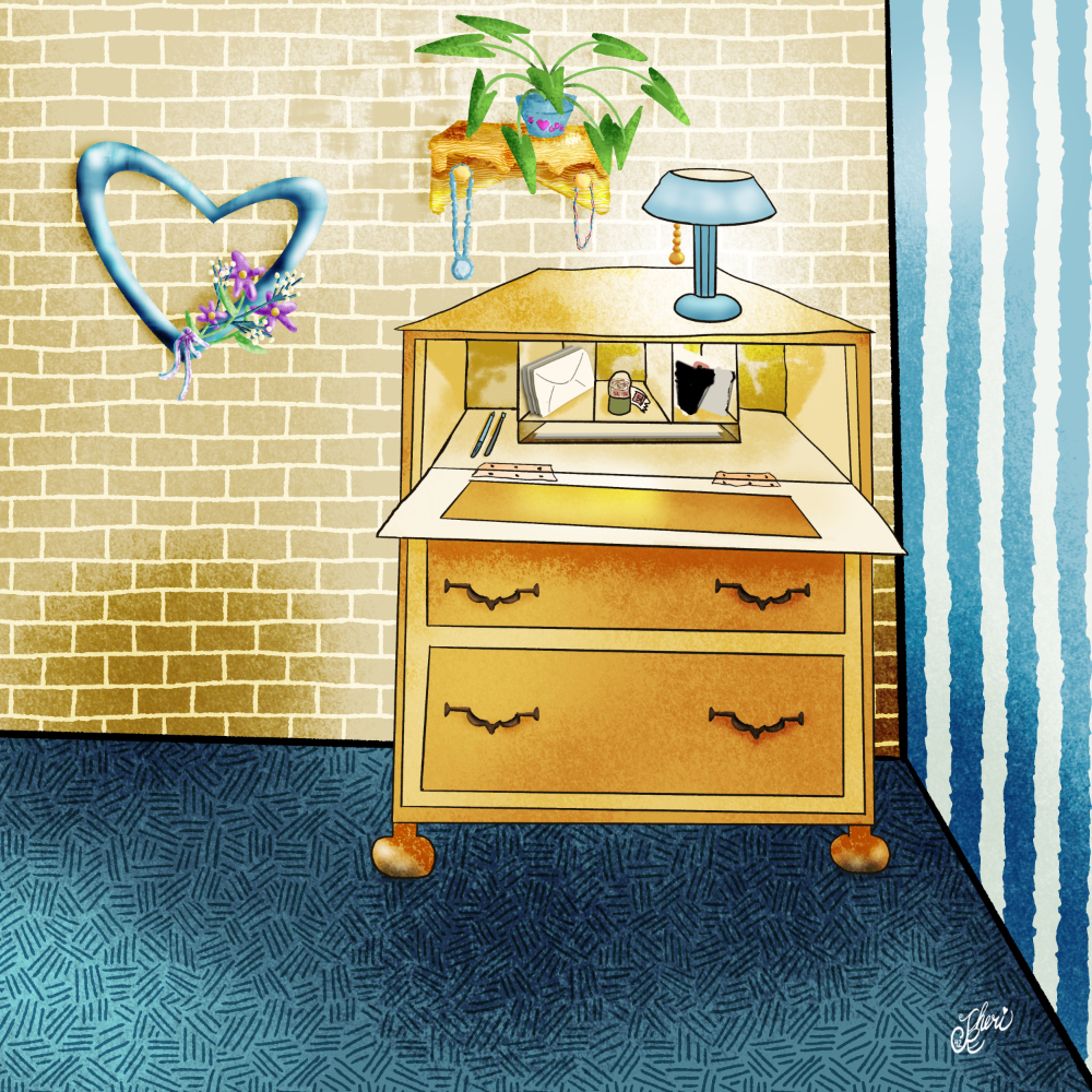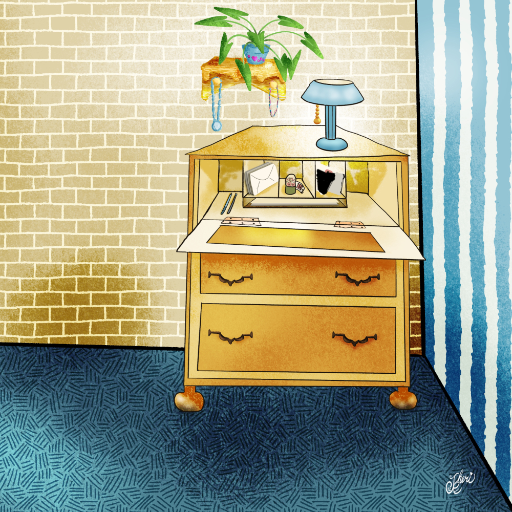 Last week the weekly theme #33 was “bedroom,” with each day a different prompt to draw: dresser, bed, nightstand, hamper, hanging plant, favorite decor. It took me quite awhile to figure out an approach, and this time I mostly chose some of my “#artasmemory” strategy– choosing items to draw with a little story behind them. But sometimes I get stuck, like the alarm clock and clothes hamper. Click images for larger view.