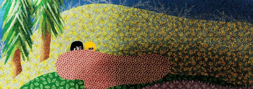 Coming up next in the story is this scene: Angie and Olivia will hide behind the protection of the red granite from the shadow of another world.