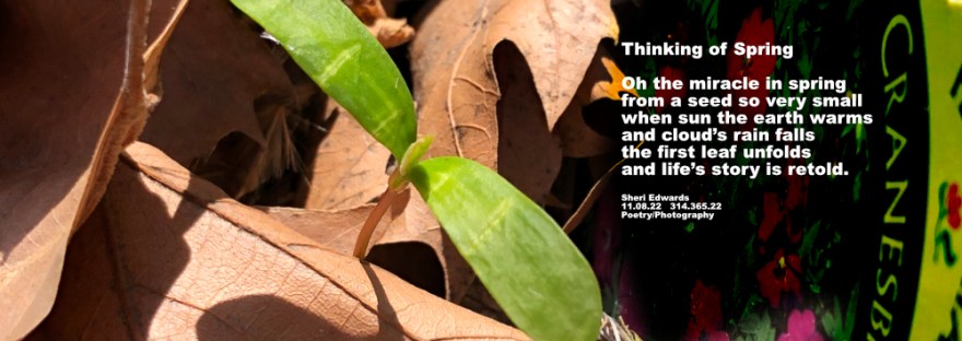 Every day, a photograph, a poem. Today’s Daily Create Crescendo Text reminded me of the first spring buds. This little cranesbill sprouted one spring in our yard. Well, it could be something else, but the miracle of seed germination is something I will always be thankful for– and snap a picture.