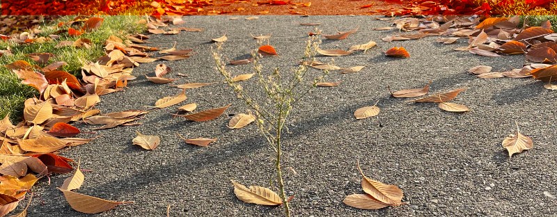 Every day, a photograph, a poem. Today on our walk, that wasn’t there before, a weed had grown! Of course, life finds a way. We paused and smiled and again discussed how life does find a way. We are so fortunate to live on planet earth.