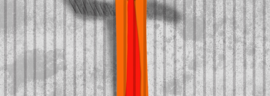 Orange– no. Fire— no. Aw- the color is “rust!” The “T” fits with the statement– hair, tie, orange — to rust behind bars, ….errr…. stripes.