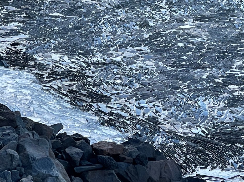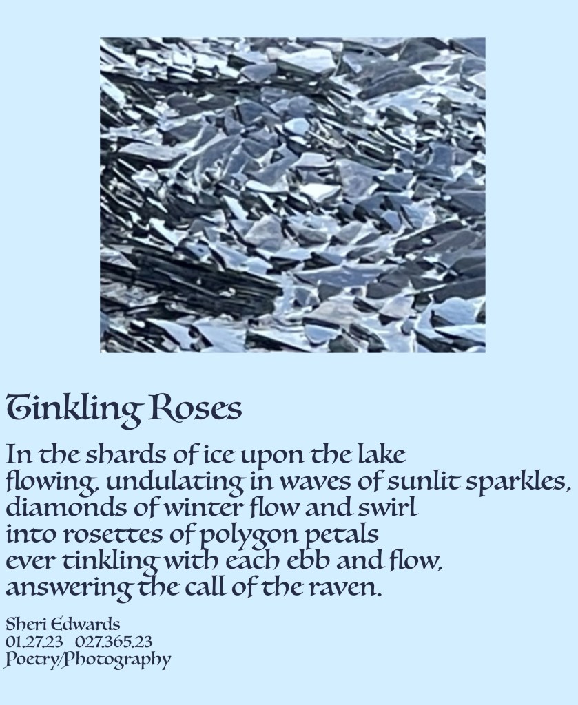 As the ice retreats and breaks up on Banks Lake, we discover its beauty sparkling in shards, swirling into small rosettes of polygon petals floating, flowing.