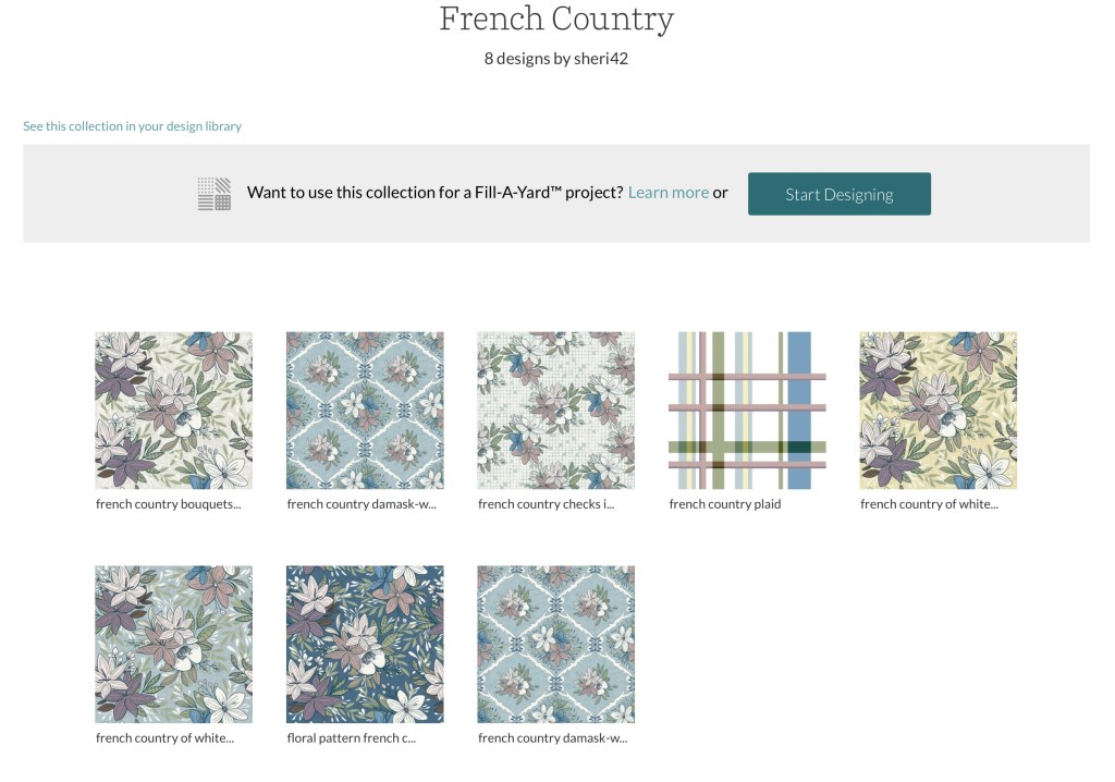 Carrie Cantwell encourages artists to participate in the Spoonflower Design Challenges, so I decided to try the French Country Design Challenge since I’d just taken Teela’s course and had a start on a floral design, which would be part of the French Country style.