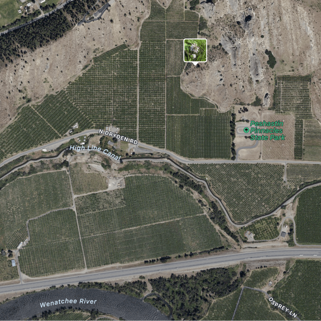 Every day, a photograph, a poem. On our way home in April, 2017 after enjoying a a family gathering, we like to find interesting places to stretch while driving on Highway 2. This day we chose to stop at Peshastin-Pinnacles State Park near Cashmere, WA. We had time for a short hike, and discovered arrowleaf balsamroot in bloom and these funky little flowers hiding beneath their lobed leaves. It popped up in my iPhone “memories” today, so I investigated the little flower.