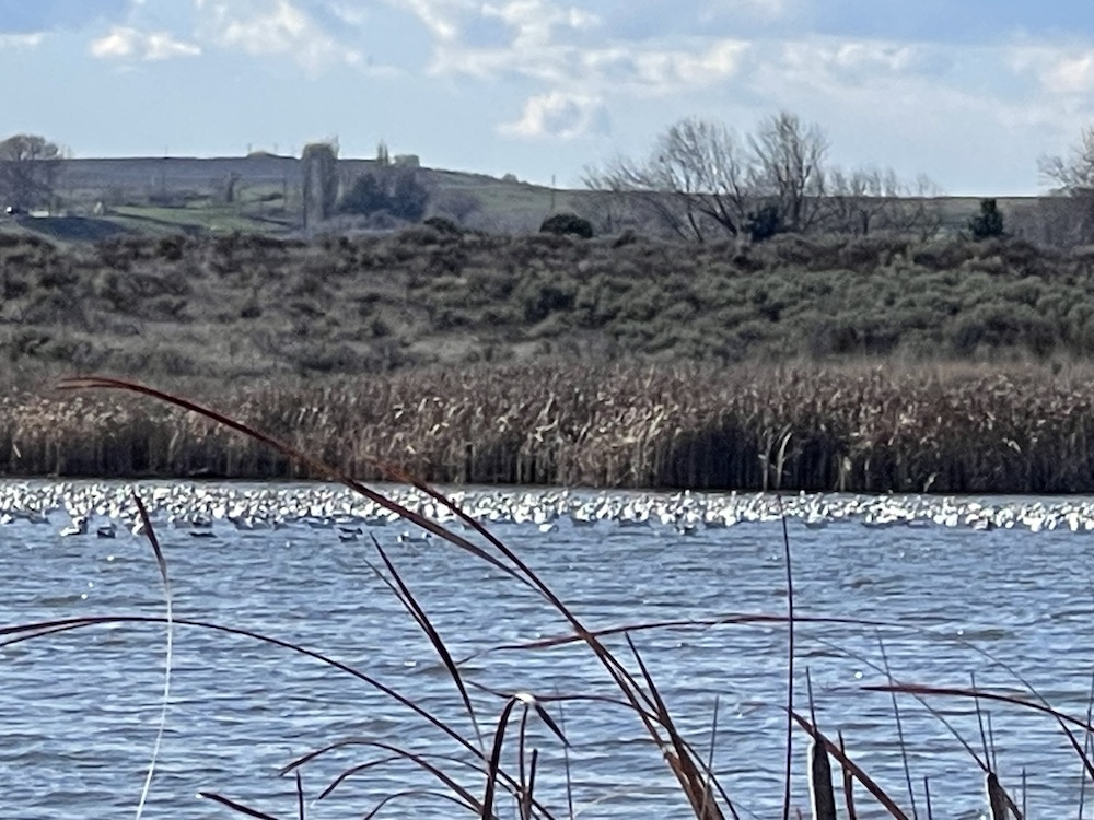 Every day, a photograph, a poem. We drove about two hours to see the sandhill crane migration at Scooteney Reservoir near Othello, Wa. We didn’t attend the Sandhill Crane Festival, but stopped for ideas on where to find the cranes– there’s a lot of water in reservoirs near here. The guide sent us to the Scooteney Park where did find about a thousand migrating birds, but they were not sandhill cranes; they were the lovely, but loud snow geese.
