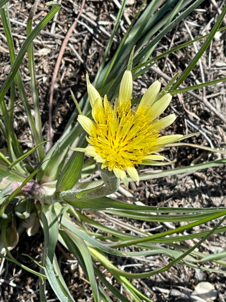 You can tell these are “goatsbeard” from its relative, meadow salsify, by the green bracts below the petals— in yellow salsify, they grow beyond the flower head. These flowers like our dryer climate.