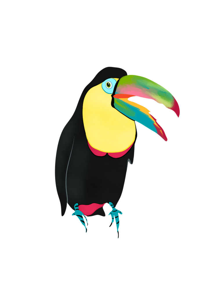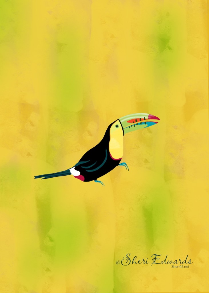I followed the same process as yesterday with the same brushes, creating two versions of the toucan. Then I added them into the monstera pattern.