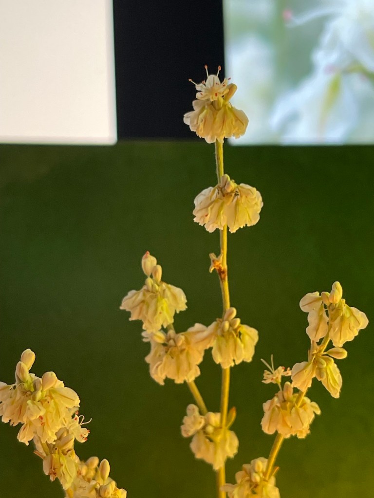 The stems branch out with whorls of flowers of six tepals. This species has leafy bracts below the flowers. As you can see, the tepals are so very tiny.