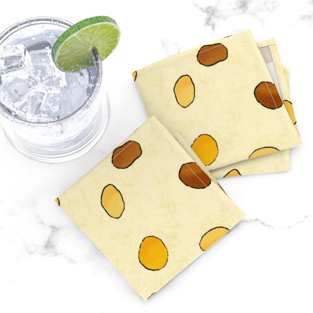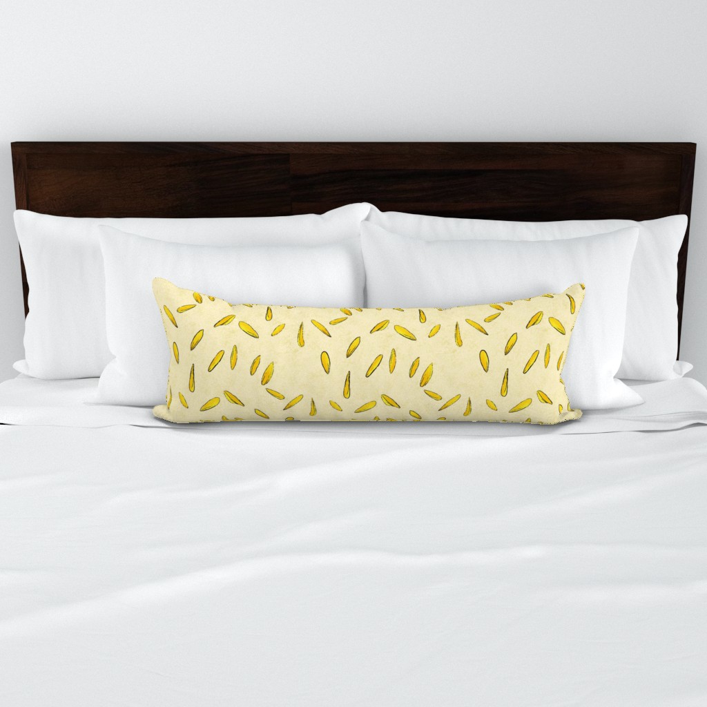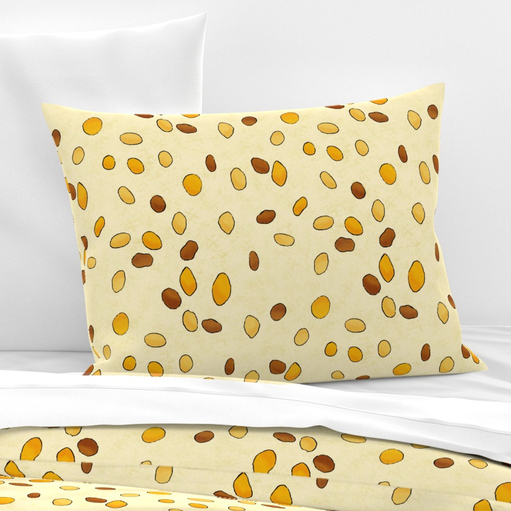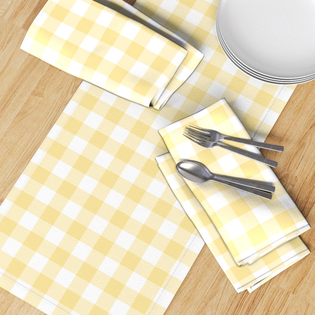 The other complementary patterns are a floral scatter pattern, a scatter pattern of falling petals, and a scattered circular motif that mimics the tiny buds of the sunflower’s disk center. In addition, I added both stripes and gingham to complete the collection for various home decor items.
