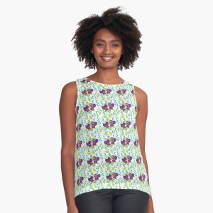 I love the pattern and had uploaded it on RedBubble: Pansy Flowers in Purple and Yellow. I have the sleeveless blouse and love the pattern and colors; it’s one of my favorites.