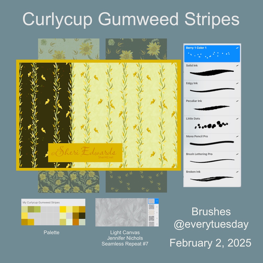 On most Wednesdays, check this blog for a strategy, process, or reflection for illustration with the iPad app ProCreate or Affinity Designer. Last week was filled with different styles, but this Wednesday Wrap Up shares only the new striped pattern for the CurlyCup Gumweed Collection.