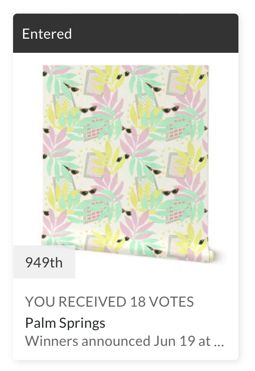I love participating in Spoonflower Design Challenges. June 4th I shared the Palm Springs design in the WrapUp. I always feel great when I break the 1000th mark. I was 949th in that design. But on my Toile with a Twist, I placed 717th! That was awesome. I’ve also entered the Retro Halloween which is up for voting until July 1st.