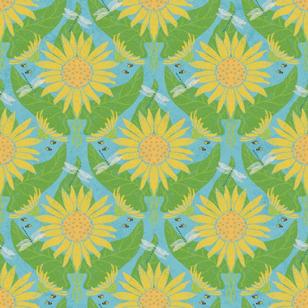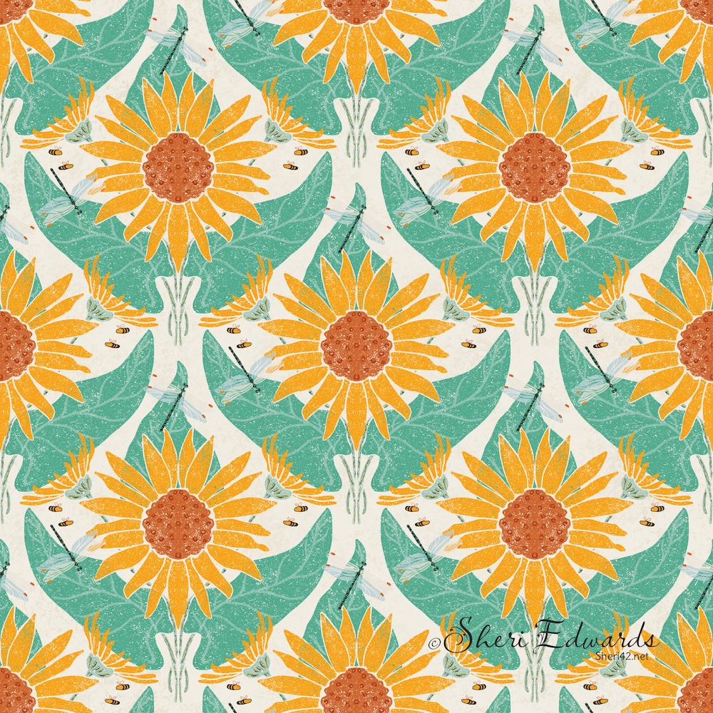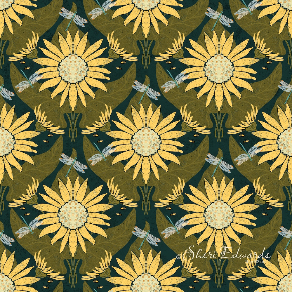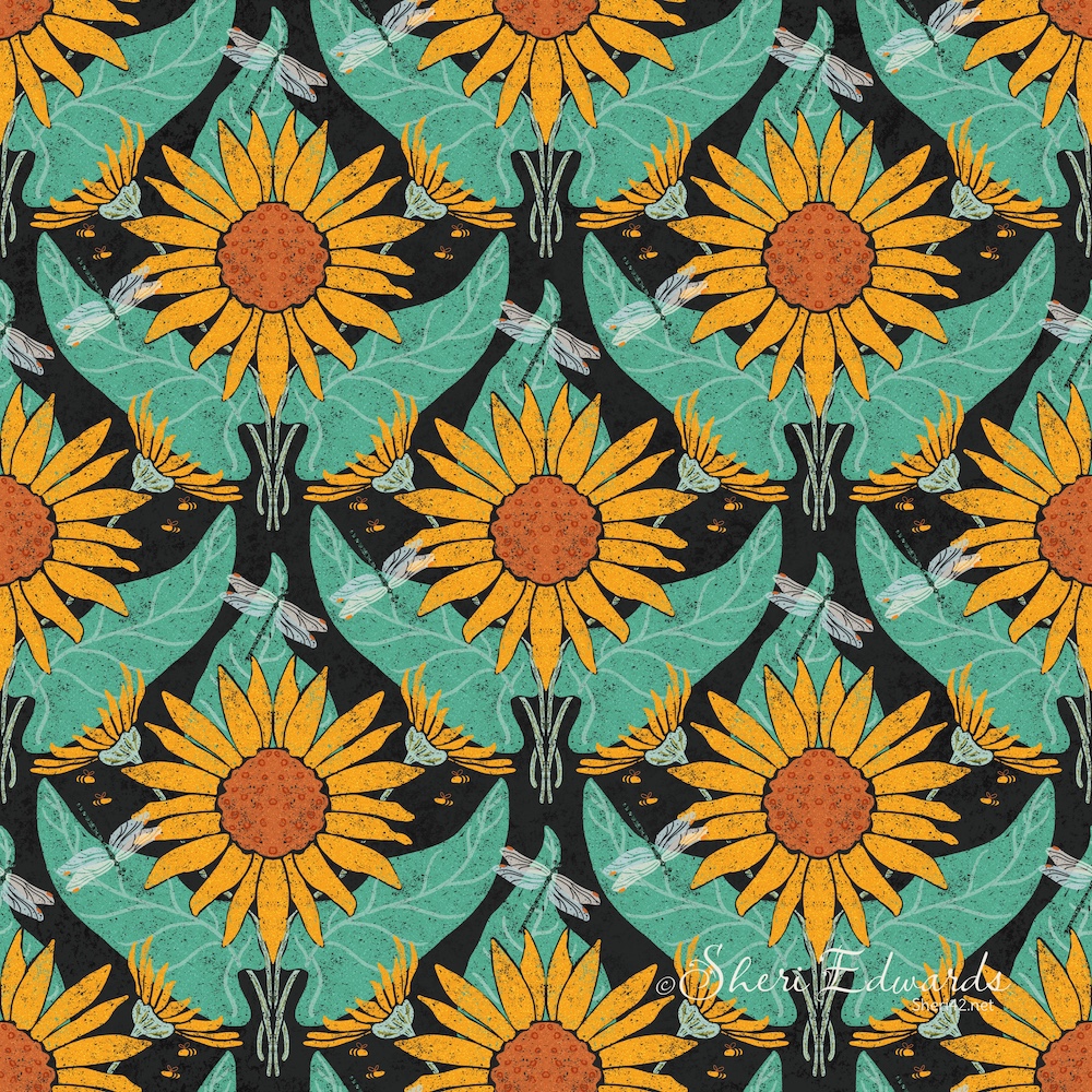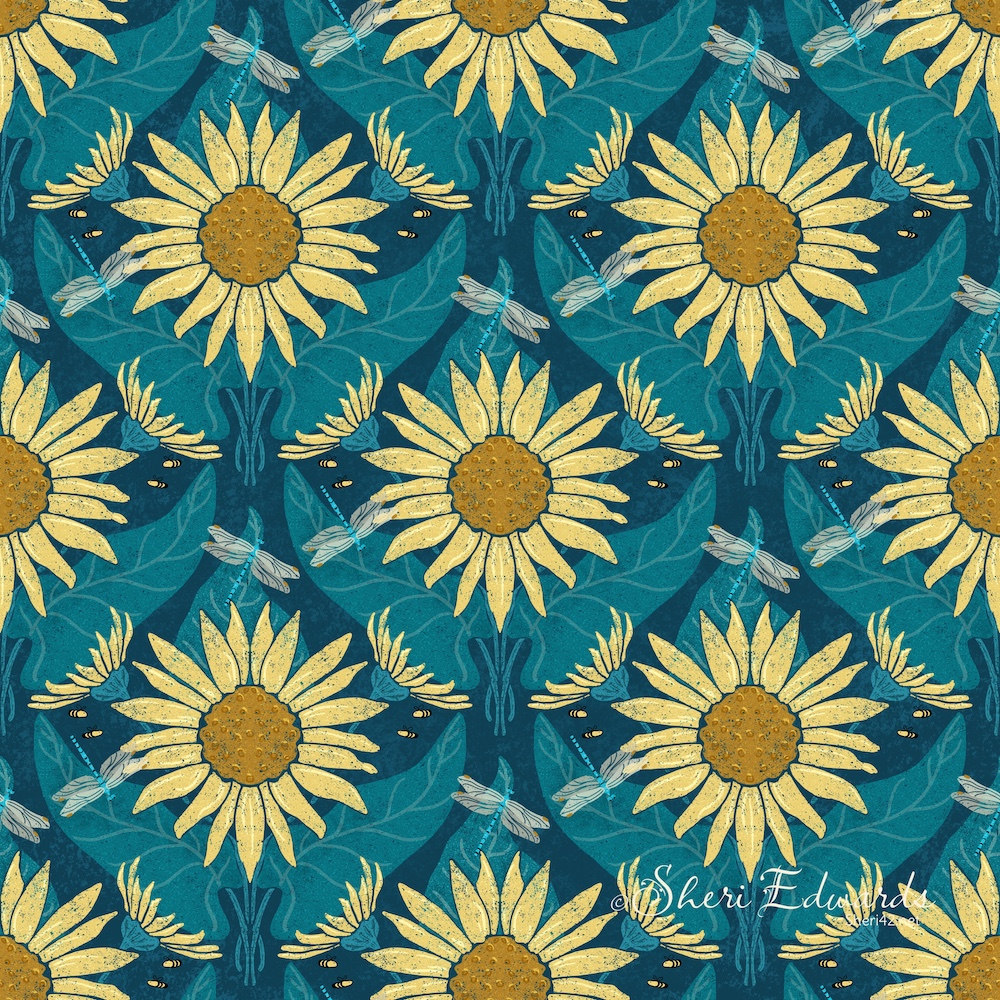 I thought I’d create it with twelve of the wildflowers of our area, starting with arrowleaf balsamroot. I broke the symmetry with one leaf and the dragonflies. I’m pretty pleased with the results.