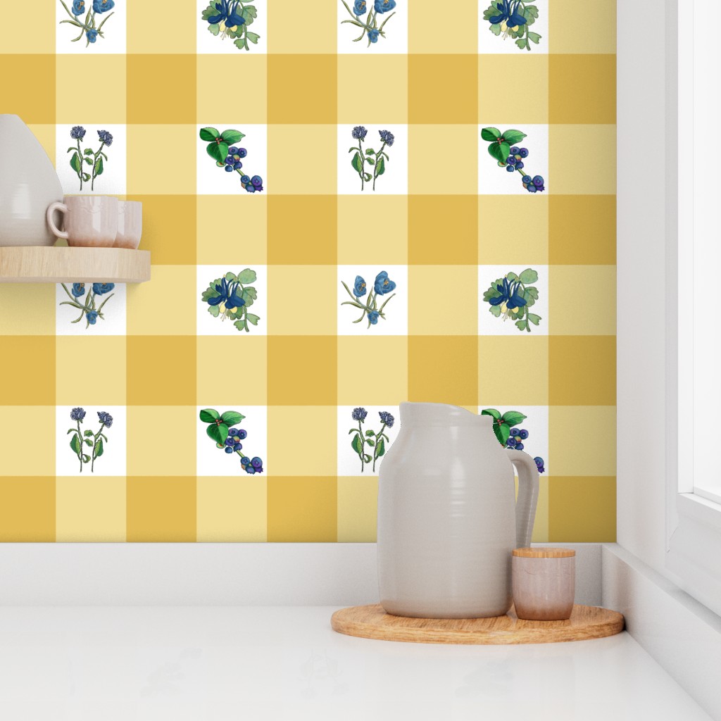 Country Retro Blues on Wheat Gold Checks